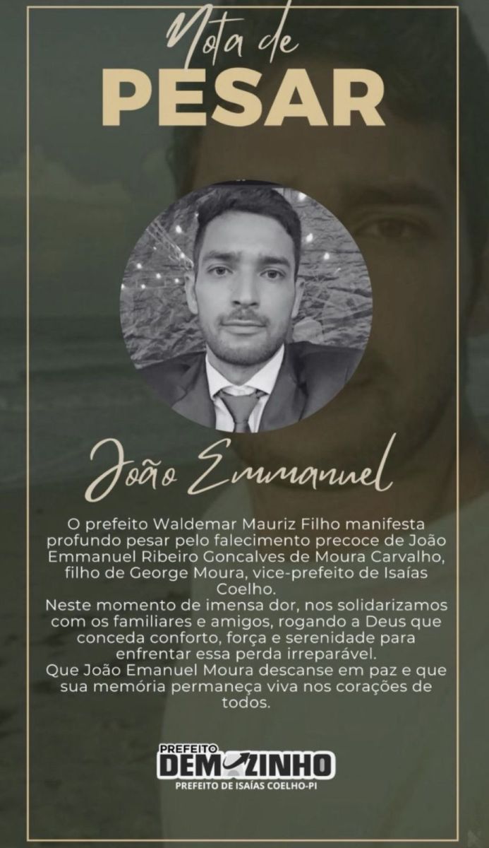 A morte de João Emmanuel causou grande repercussão em Isaías Coelho e em municípios da região. Nas redes sociais, moradores, amigos e lideranças políticas manifestaram pesar e solidariedade à família neste momento de dor.