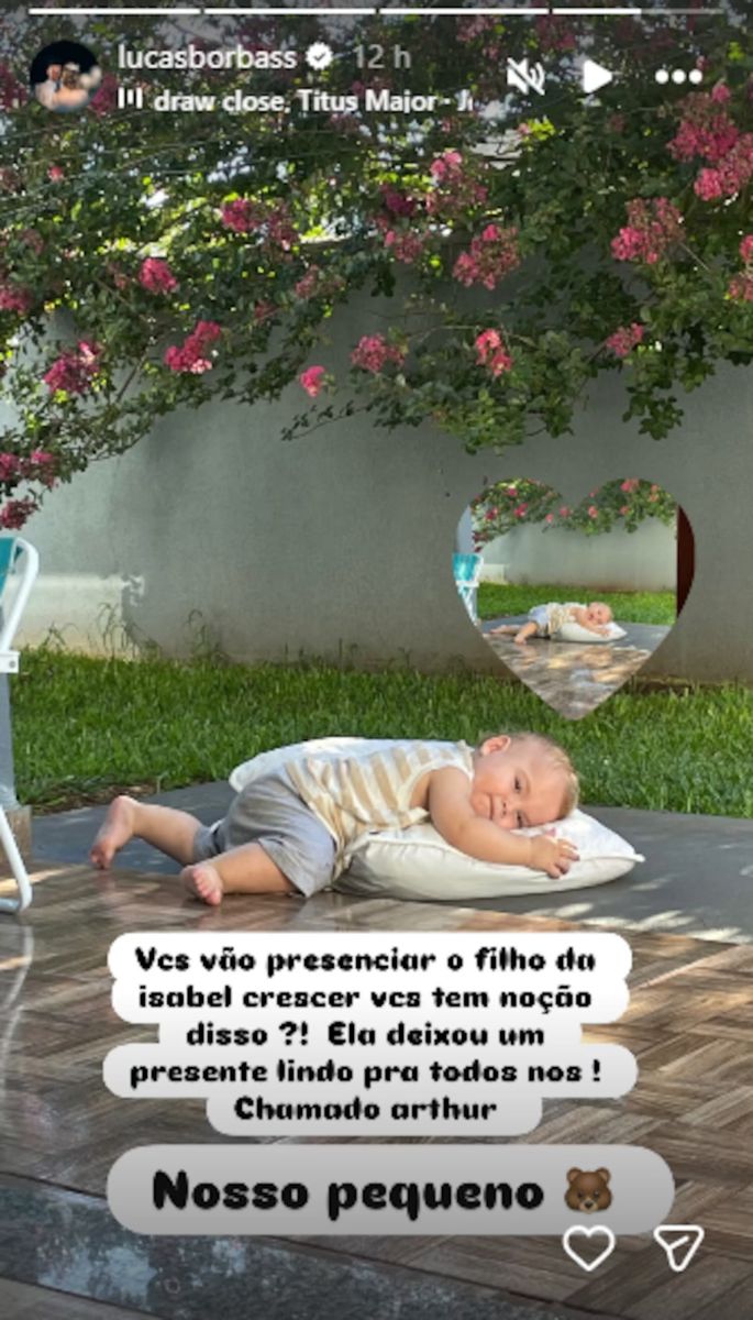 “Vocês vão presenciar o filho da Isabel crescer, vocês têm noção disso? Ela deixou um presente lindo pra todos nós”, citando o nome do menino. Em seguida, completou: “Nosso pequeno”, acompanhado de um emoji de ursinho.