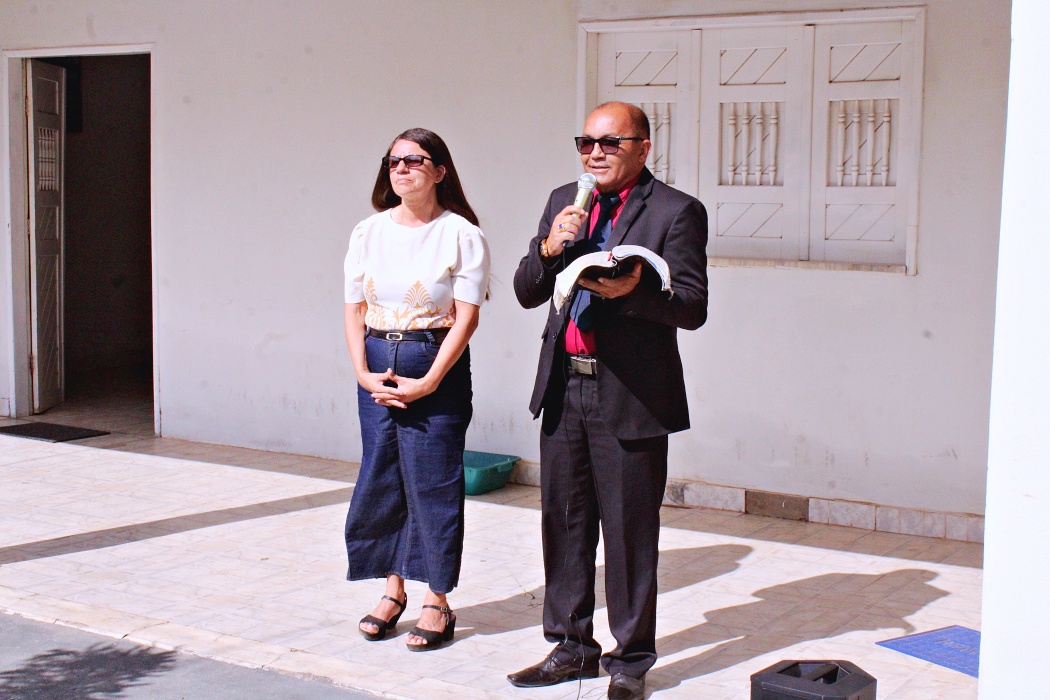 Após o hasteamento das bandeiras foi realizado um momento de oração com o Pastor Manoel José Pereira e a missionaria Antônia, orando pela cidade, a administração e a população de Campo Grande, pelo crescimento e desenvolvimento.