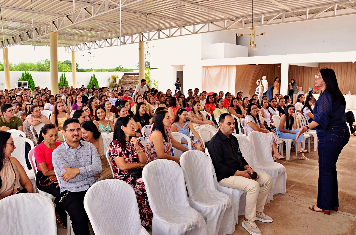 Durante a programação, os participantes acompanharam uma palestra motivacional conduzida por Edigleide Rabelo, que trouxe reflexões inspiradoras sobre propósito, compromisso e o papel transformador da educação na vida dos estudantes e da sociedade, contribuindo para renovar as energias e fortalecer o engajamento para o início do ano letivo.