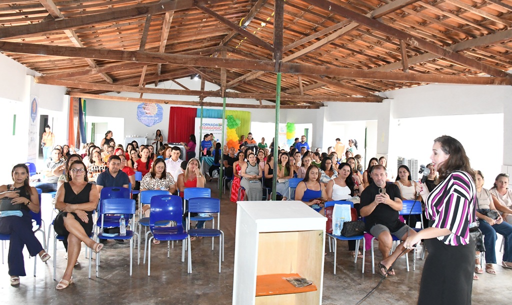 A programação do primeiro dia contou com a palestra da professora doutora Alessandra Lopes de Oliveira Castelini, docente adjunta e pesquisadora da Universidade Federal do Piauí, campus Senador Helvídio Nunes de Barros. Doutora em Diversidade Cultural e Inclusão Social, mestre em Educação e especialista em Gestão e Organização Escolar e Coordenação Pedagógica, a palestrante conduziu reflexões sobre o tema central da jornada: “Educ(ações), a quem se destina?”.
