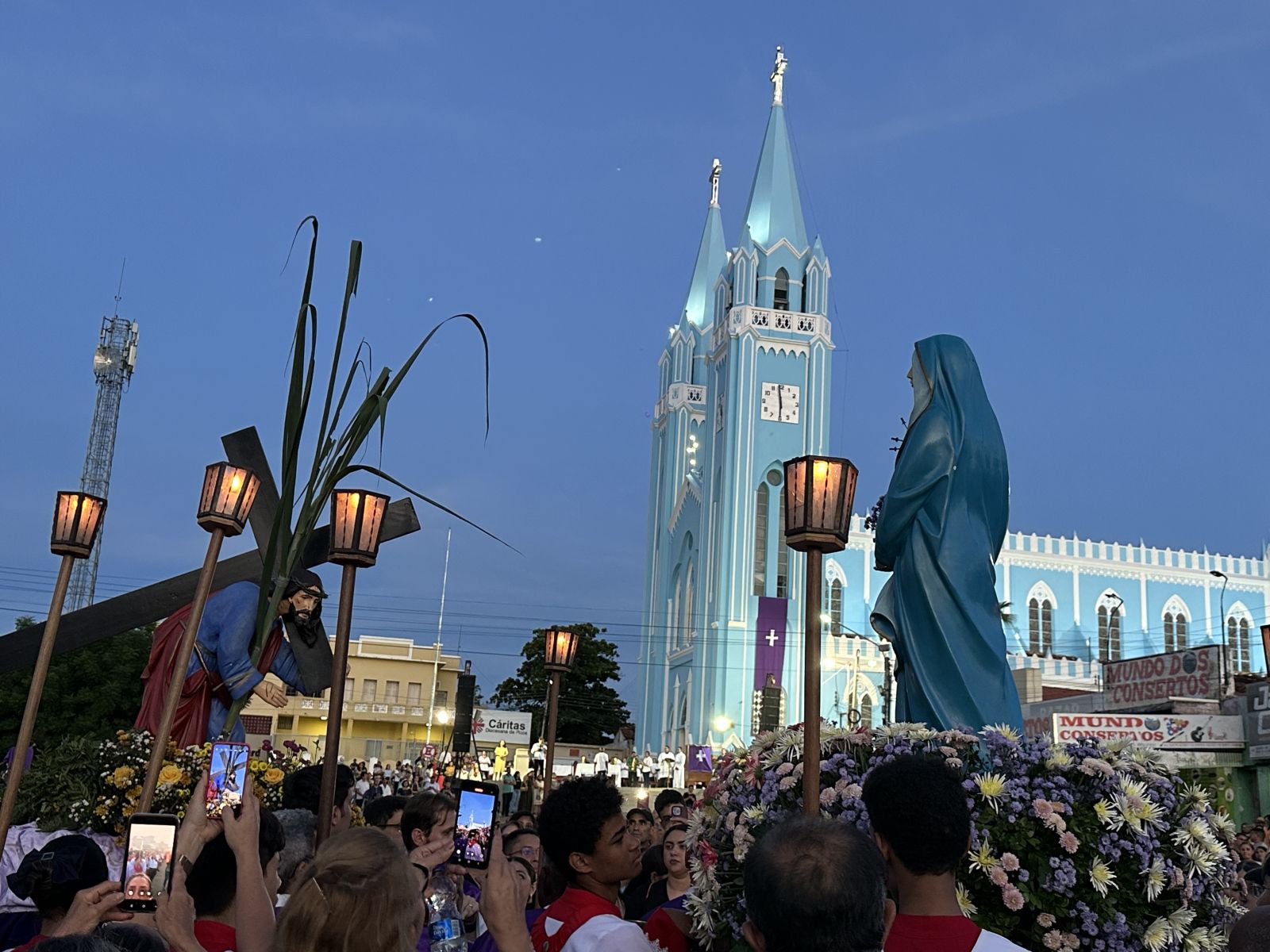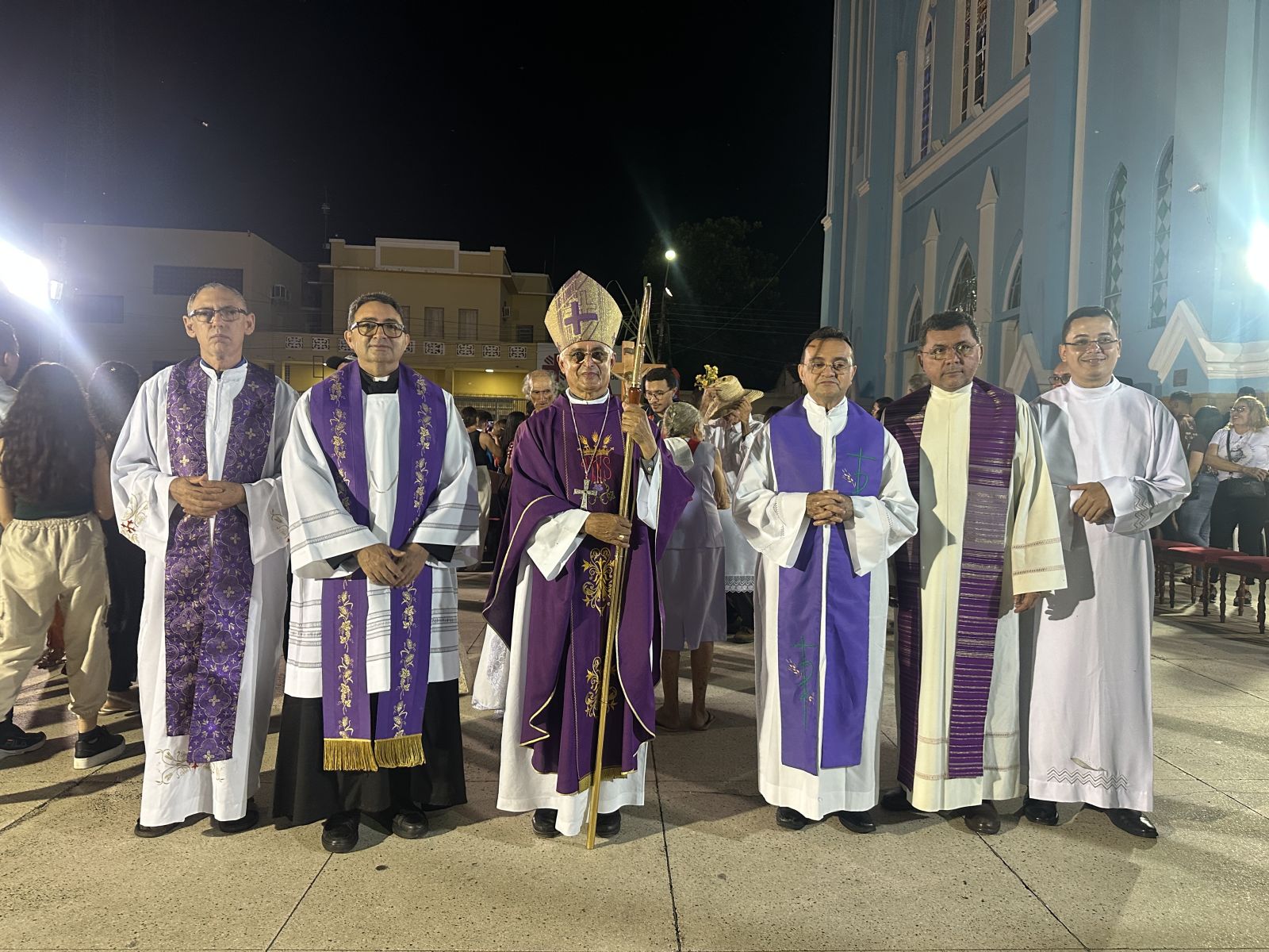 O ponto alto da celebração foi o encontro das imagens na Praça Justino Luz, em frente à Igreja Catedral Nossa Senhora dos Remédios, reunindo uma multidão de fiéis em um momento de forte emoção e espiritualidade.