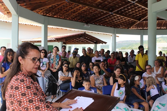 Na oportunidade o governador ladeado da prefeita Maria José e da secretária de educação inauguraram a inauguraram a Unidade Escolar Prefeito Francisco Borges, que atenderá cerca de 160 alunos do município.