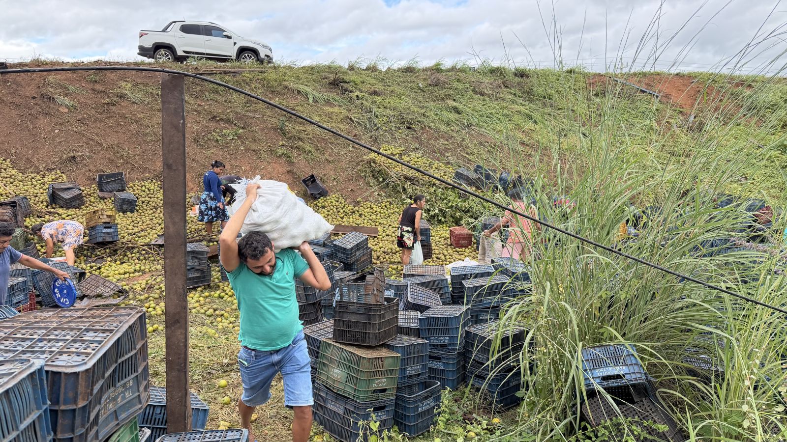 Moradores da região aproveitaram a situação para recolher parte da carga de laranjas que ficou espalhada às margens da rodovia.