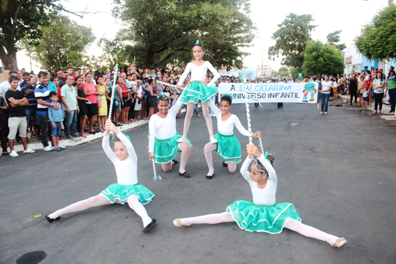 De forma bem organizada e com o auxílio dos professores e coordenadores, os alunos das escolas Catarina, Obetiza Nunes, Conceição Leal Dantas, Professor Francisco Moura, Raimundo Martins dos Santos, Luiz Rodrigues de Sousa Martins e Severo Maria Eulálio desfilaram retratando, conscientizando, homenageando e até denunciando os períodos históricos, as potencialidades naturais e culturais do Brasil pós independência, com destaque também para a Batalha do Jenipapo, ocorrida em solo piauiense. Também participaram do desfile o Conselho Tutelar, os alunos da Universidade Aberta e a Comunidade Quilombolas, que encerrou o evento.