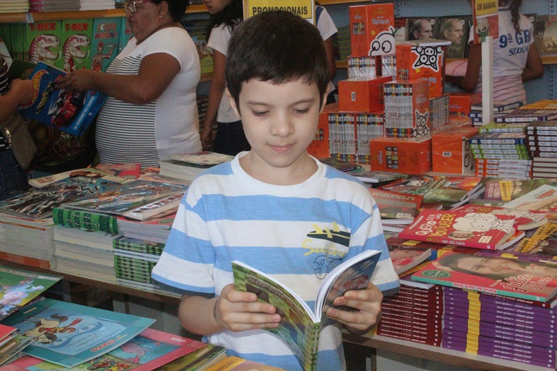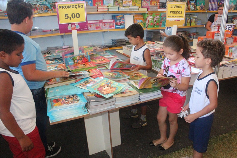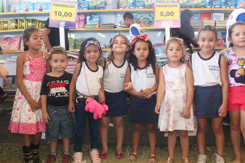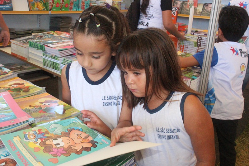 Alunas da Unidade São Sebastião durante visita aos estandes de livros (Foto: Jesika Mayara)