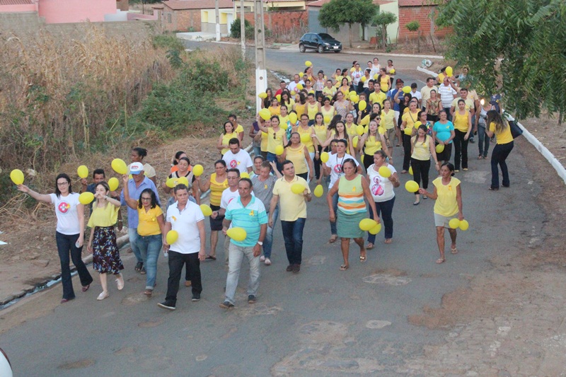 Servidores municipais, secretários, vereadores, idosos e adolescentes assistidos pelos programas sociais participaram do ato que tem por objetivo conscientizar a população local para a valorização da vida.