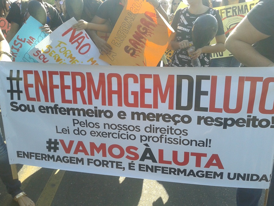 A manifestação reuniu profissionais, estudantes e professores dos cursos de enfermagem da cidade e se concentrou em frente ao Hospital Regional Justino Luz (HRJL)