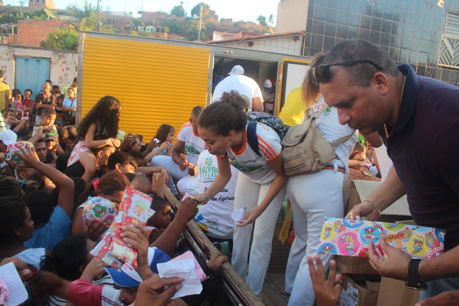 A ação social idealizada pelo empresário Joseli de Lima Oliveira, mais conhecido como Zomim, contou com brinquedos, distribuição de picolés e iogurtes, além da entrega de presentes.