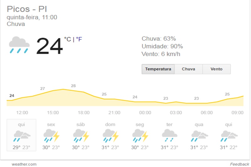 Para os próximos quatro dias, o Estado do Piauí terá uma trégua no sol ardente, pois a presença de nuvens durante todo o dia permitirá que a sensação térmica (umidade do ar) tenha uma queda, é o que mostra o Instituto Nacional de Metereologia (INMET) em relação a algumas cidades.
