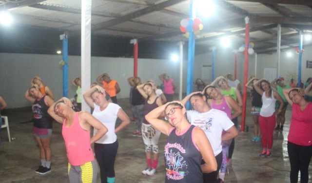 Em seguida foi desenvolvida a oficina de Ginástica Aeróbica. A primeira noite de atividades foi marcada pela grande quantidade de mulheres, que se mantiveram ativas e participativas do início ao fim, em todos os exercícios.
