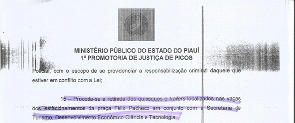 A notificação recomendatória 91/2018 feita pelo Ministério Público do Estado do Piauí, através da 1° Promotoria de Justiça de Picos, a Prefeitura Municipal de Picos estabeleceu a tomada de algumas ações por parte do poder público para a melhoria do trânsito da cidade.