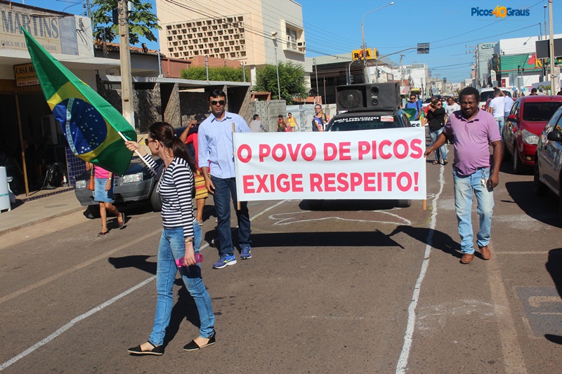 Vendedores ambulantes e donos de trailers realizaram na manhã desta terça-feira, 05, uma caminhada cívica pelas ruas do Centro de Picos, em protesto ao projeto da Prefeitura Municipal, que pretende realocar a categoria para o Shopping Popular e para a Avenida Beira Rio.
