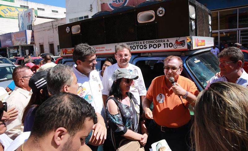 O candidato ao Governo do Estado pela coligação Piauí de Verdade (PSDB, PSB e DEM), Luciano Nunes Filho (PSDB), esteve na manhã de hoje, sábado (25), fazendo campanha no Centro de Picos. Ele estava acompanhado dos candidatos ao Senado em sua chapa, o ex-governador Wilson Martins (PSB) e o deputado estadual Robert Rios Magalhães (DEM). Também presentes a candidata a vice-governadora, delegada Cassandra Moraes Souza e o seu pai, o ex-governador e atual prefeito de Parnaíba, Francisco de Assis de Moraes Souza, o Mão Santa.