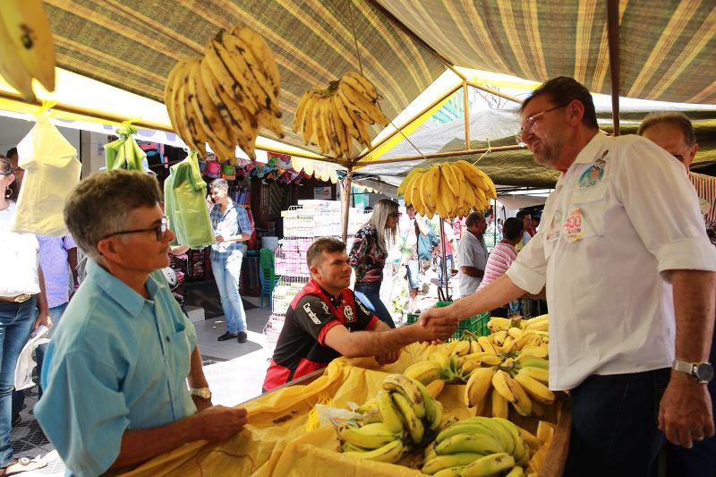 Os candidatos de oposição visitaram a feira livre e em seguida receberam adesões de lideranças em um hotel da cidade