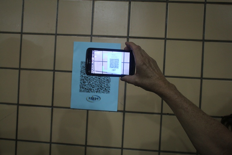 Direcionados através de um aplicativo para dispositivo móvel, o QR-CODE READER, os participantes da gincana circularam pelas dependências do IMH, como biblioteca, refeitório, quadra, em busca de pistas para decifrar os problemas.