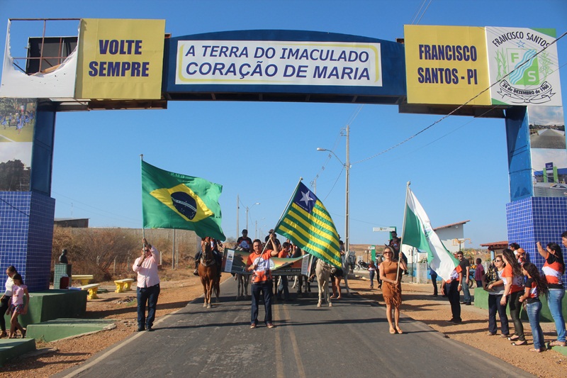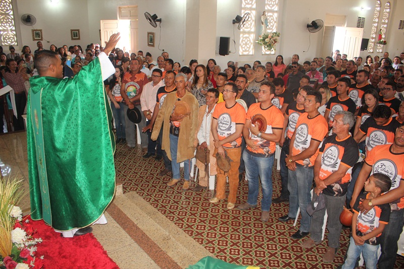 Logo cedo os vaqueiros se concentraram no portal da cidade e seguiram com a imagem de Nossa senhora Aparecida e as bandeiras do Brasil, do Piauí e de Francisco Santos até a Igreja Matriz do Imaculado Coração de Maria, onde participaram de uma missa em ação de graças presidida pelo padre Marcos Roberto Vieira. Confira álbum!