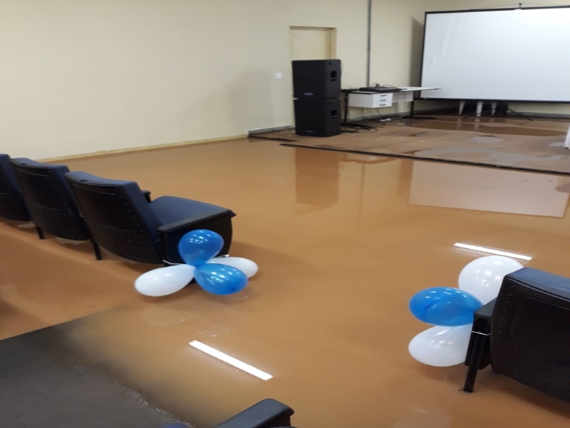 O pátio e o auditório do campus Senador Helvídeo Nunes da Universidade Federal do Piauí também registrou acúmulo de água.