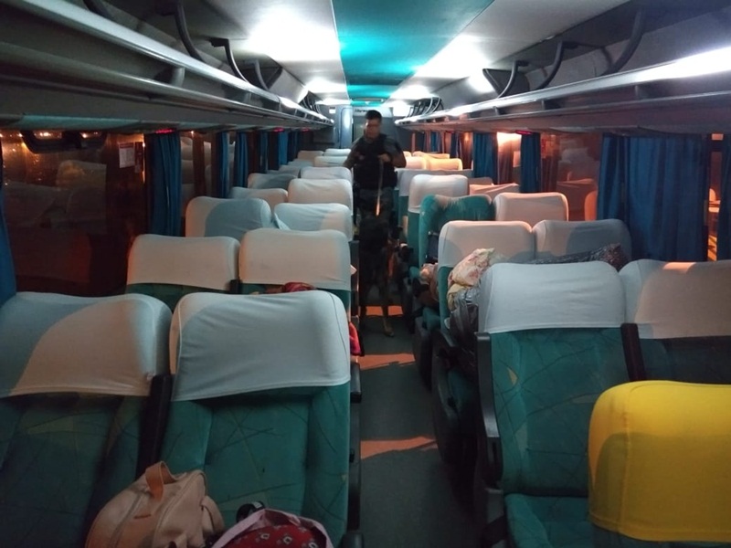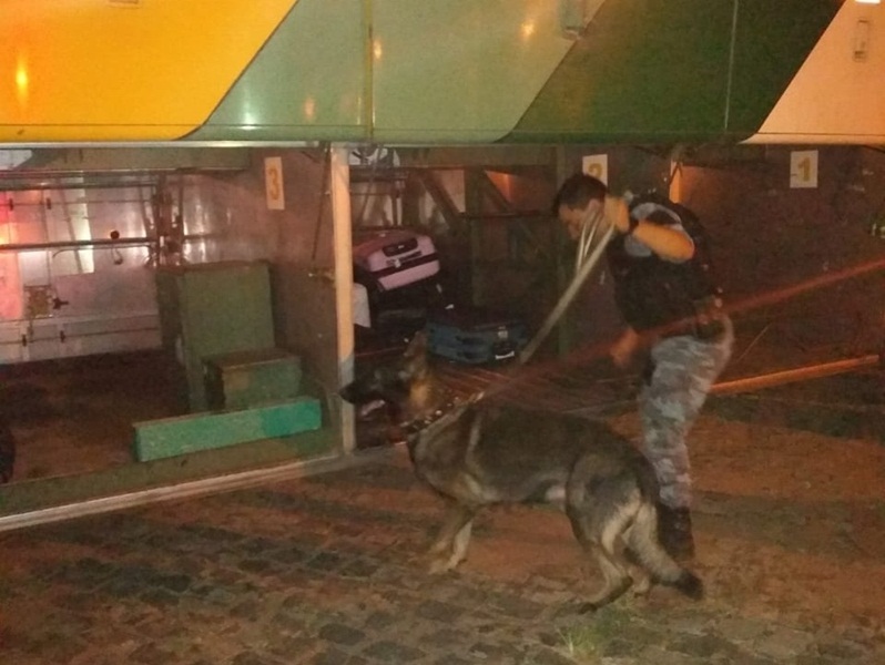 Barreiras foram realizadas nos bairros Samambaia e Mirolândia, onde homens da Força Tática e do Canil, com a ajuda do cão farejador ‘Thor’, realizaram abordagens a veículos de transporte de passageiros.