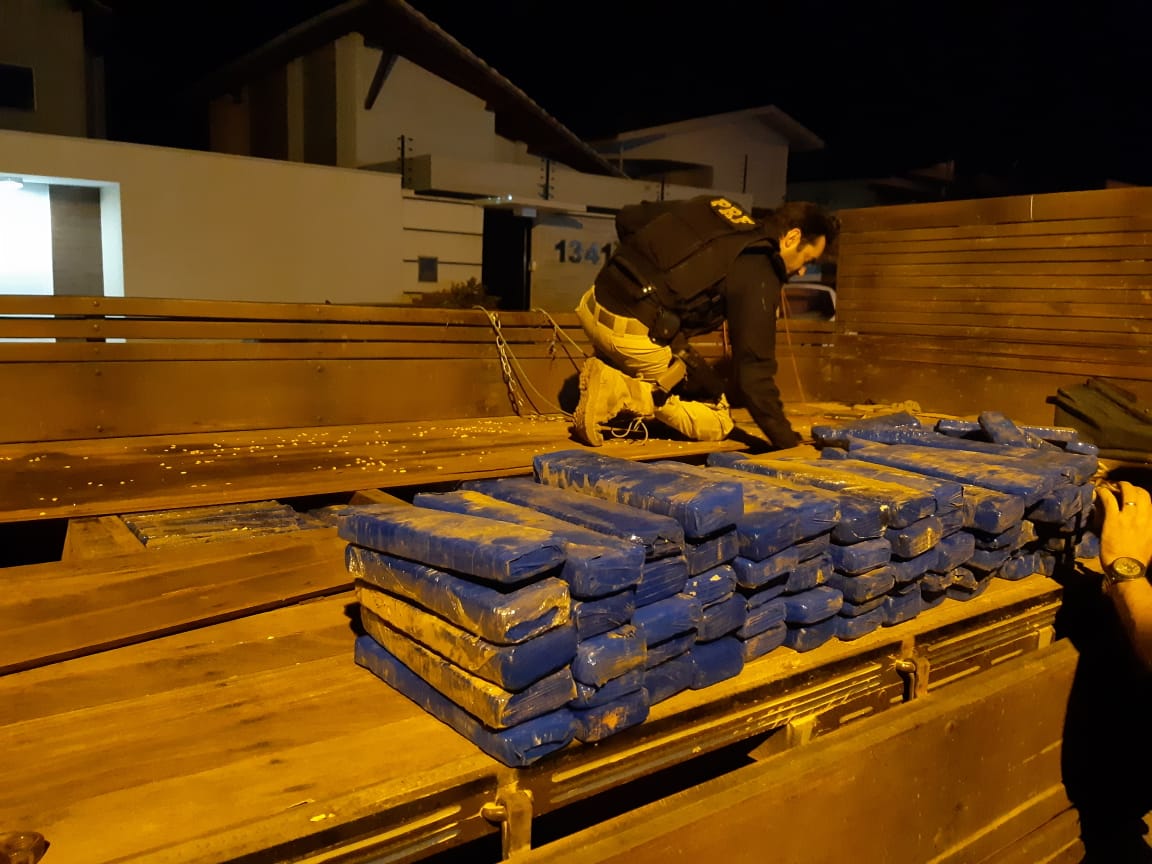 O carregamento de maconha era transportado em um fundo falso do veículo FORD/F4000 conduzido por um homem de 37 anos de idade. Aproximadamente meia tonelada de uma substância análoga a maconha foi encontrada empacotada e prensada em tabletes.