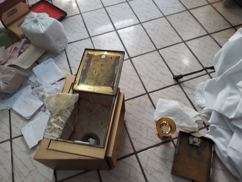 Os mesmos entraram pelo teto do templo e reviraram todas as salas e espaços do templo religioso, inclusive o sacrário, derramando as hóstias pelo chão.