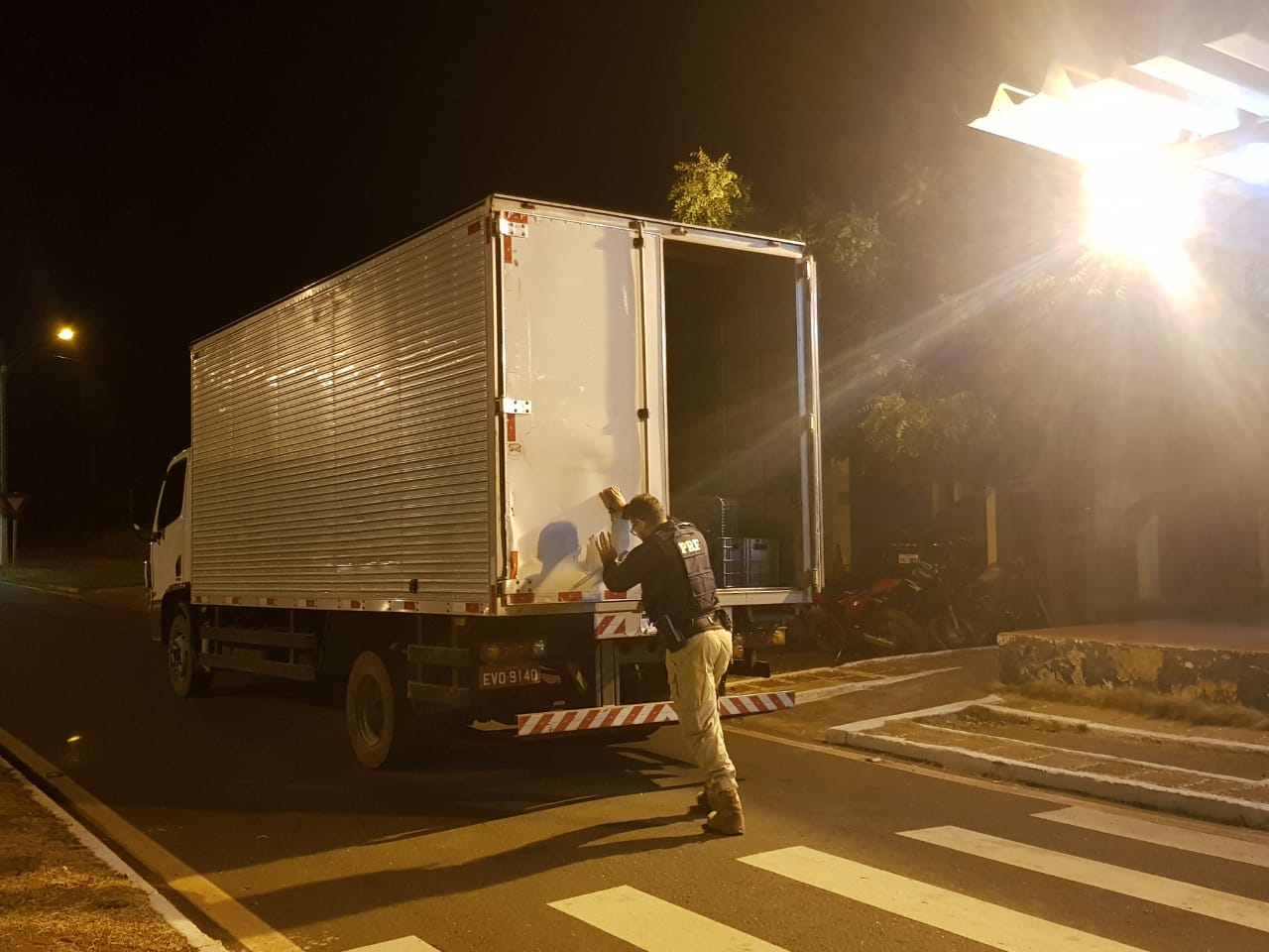 Os cigarros estavam no interior do compartimento de carga tipo baú escondido entre caixas de verduras para que não fosse identificado a carga.