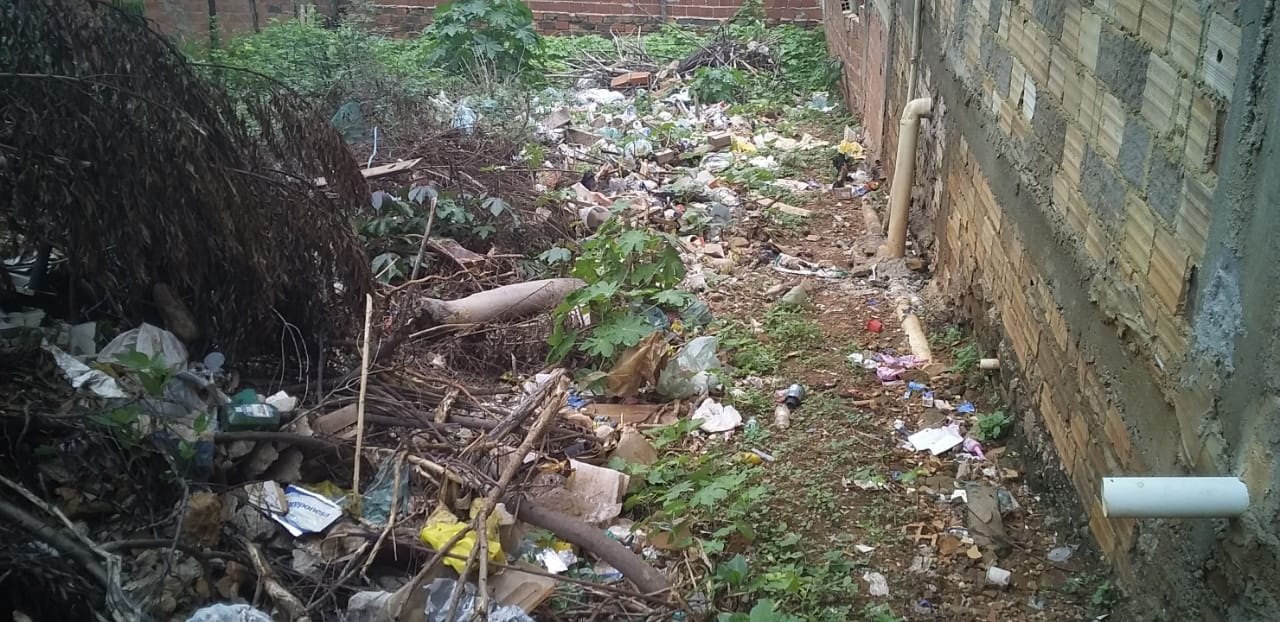 Sem a coleta periódica, os moradores descartam o lixo residencial em terrenos. O acúmulo tem preocupado os habitantes da rua, que ficam mais temerosos no período chuvoso.