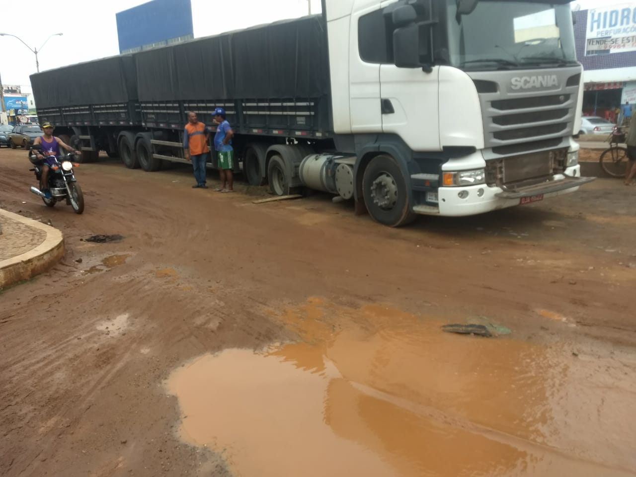 Nos últimos dias um dos trechos mais críticos da obra de drenagem das laterais da BR 316, no bairro Bomba, foi liberado e o trânsito reestabelecido. Porém, por volta das 05h00 deste sábado, 08, uma carreta atolou no local.