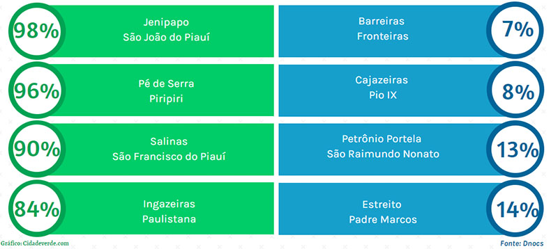 Grandes reservatórios como Piaus (em São Julião) e o Petrônio Portela (São Raimundo Nonato) também enfrentam uma estiagem severa. Os açudes estão 20,09% e 13,79% de água, respectivamente.