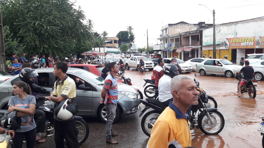 A chuva desta segunda-feira, 16, em Picos, teve início por volta das 05h00. A mesma inundou ruas e avenidas da cidade.