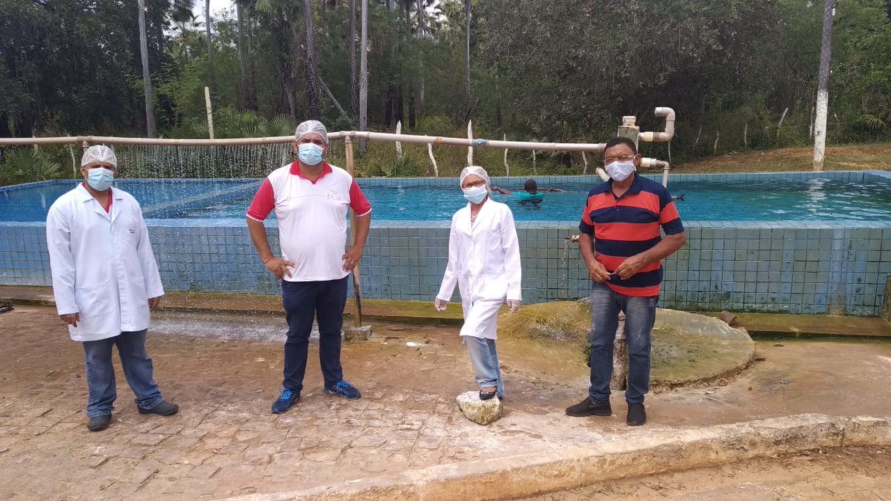 Servidores da saúde do município acompanhados da Polícia Militar isolaram a piscina da área.
