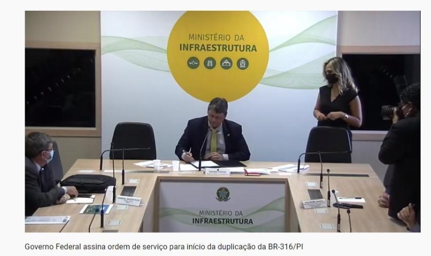 A obra de duplicação da BR-316, de Teresina a Demerval Lobão, será iniciada nesta terça-feira (14), executada pelo Departamento Nacional de Infraestrutura de Transportes (DNIT), com recursos de emendas do senador Elmano Férrer (Podemos). O ministro da Infraestrutura Tarcísio Gomes de Freitas assinou a ordem de serviço durante videoconferência com a bancada de parlamentares do Piauí na tarde desta segunda-feira (13).