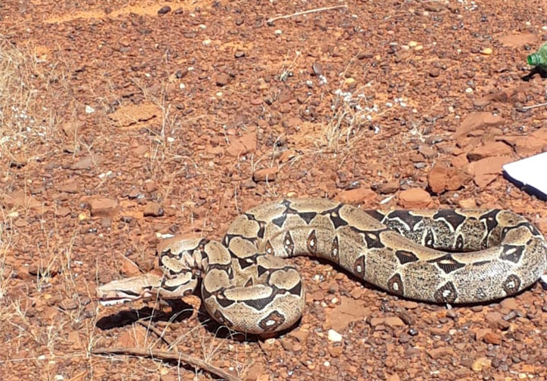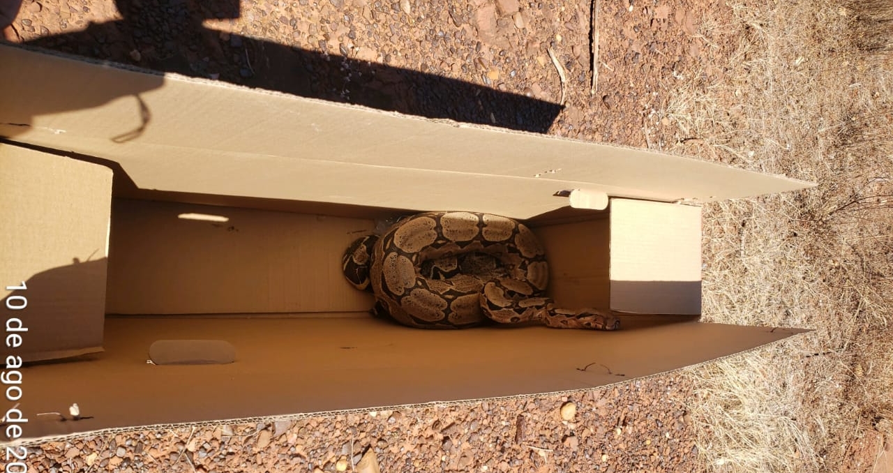 Uma jiboia, medindo quase três metros, foi capturada na manhã desta segunda-feira, 10 de agosto, na entrada do estacionamento de um supermercado localizado no bairro Boa Sorte, em Picos.