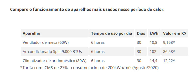 Com o aumento da temperatura e a busca para amenizar o calor, consequentemente ocorre o crescimento do uso de ventilador, ar-condicionado e umidificadores, aumentando consideravelmente o consumo. Em tempos de isolamento social, isso ainda será somado ao aumento já ocasionado por conta do trabalho em home office e as crianças mais tempo em casa.